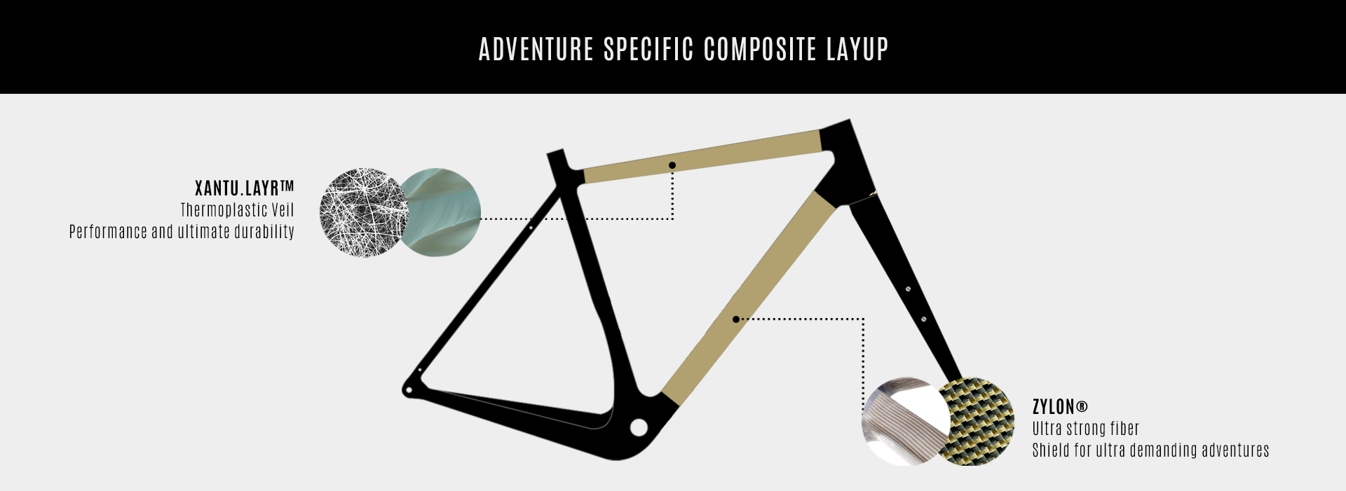 Panorama開發(fā)出使用復(fù)合框架的自行車,嘗試突破復(fù)雜環(huán)境下所帶來的破裂沖擊。與鋼制框架自行車相比,復(fù)合材料自行車具有許多優(yōu)勢,輕巧,堅(jiān)固,性能好,更舒適。Panorama將高強(qiáng)度的復(fù)合材料預(yù)浸料與Xantu.Layr納米纖維增韌膜層鋪交織在一起,研發(fā)了可以承受更大沖擊應(yīng)力的自行車復(fù)合框架。
